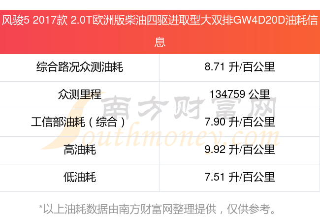 以上油耗數(shù)據(jù)由南方財富網(wǎng)整理提供,僅供參考。