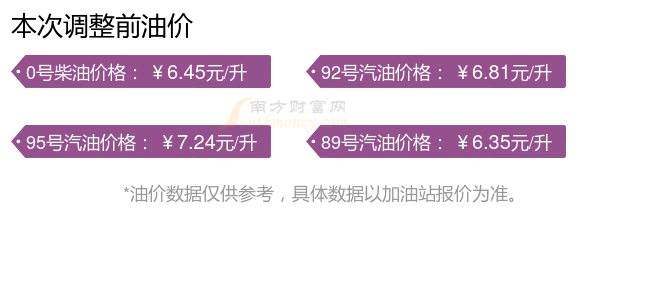 上海汽油、柴油11月15日每升最新價格:92號汽油為6.91元;95號汽油為7.35元;89號汽油為6.44元;0號柴油為6.56元,本輪油價調(diào)整時間為11月11日。