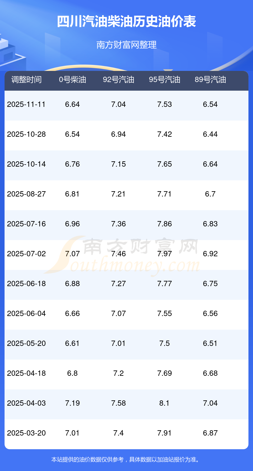 (11月15日)92、95號(hào)汽油價(jià)格一覽表