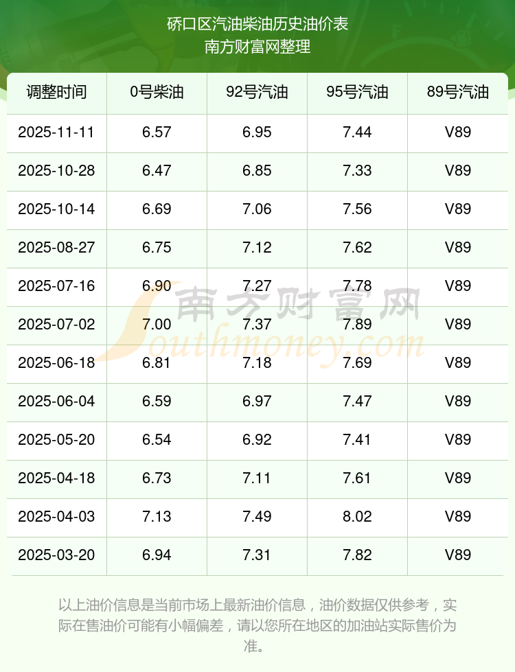 2025年硚口區(qū)汽油價格一覽表