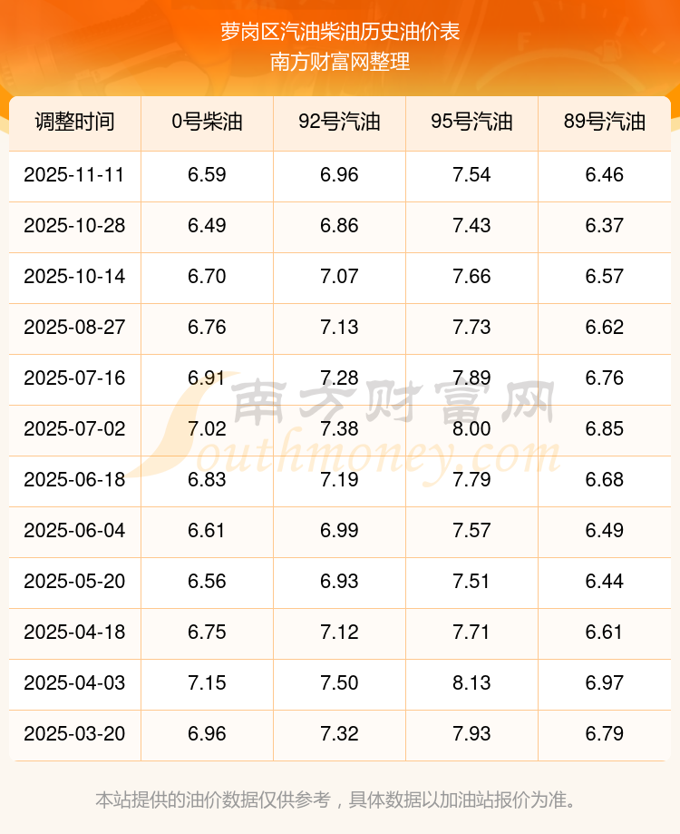 2025年蘿崗區(qū)油價調(diào)整時間表
