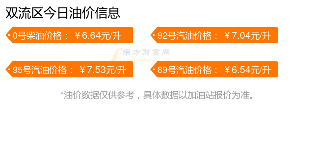 雙流區(qū)11月15日汽油價格一覽:92號汽油7.04元;95號汽油7.53元;89號汽油6.54元;0號柴油6.64元(該價格為11月11日調(diào)整后的價格)。
