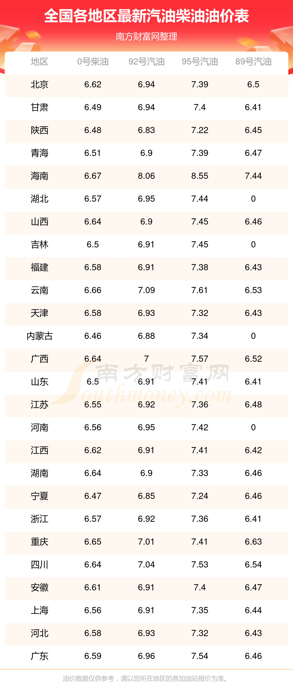 本站提供的油價數(shù)據(jù)僅供參考,具體數(shù)據(jù)以加油站報價為準。