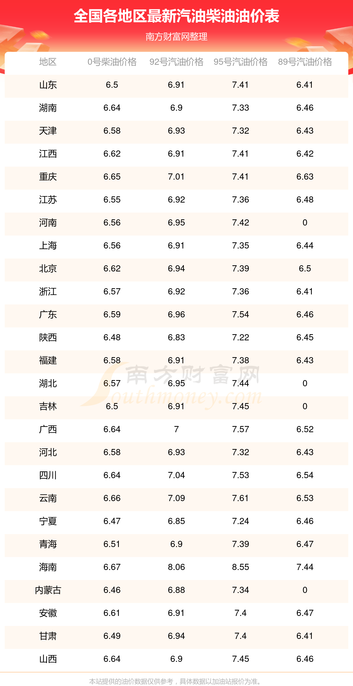 油價(jià)數(shù)據(jù)僅供參考,請以您所在地區(qū)的各加油站報(bào)價(jià)為準(zhǔn)。