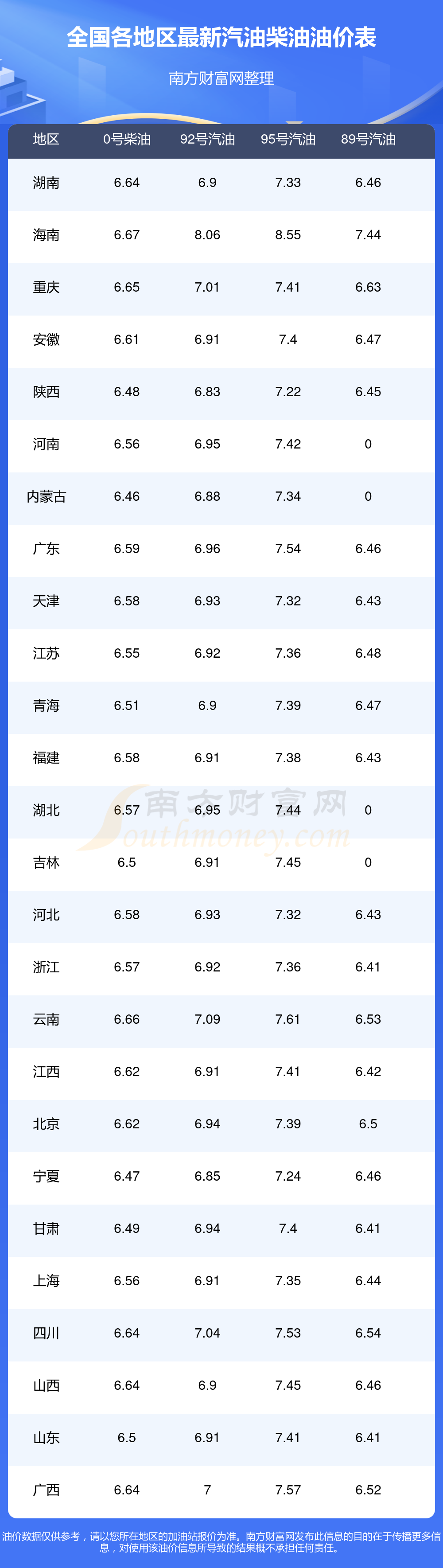 本站提供的油價數(shù)據(jù)僅供參考,具體數(shù)據(jù)以加油站報價為準。