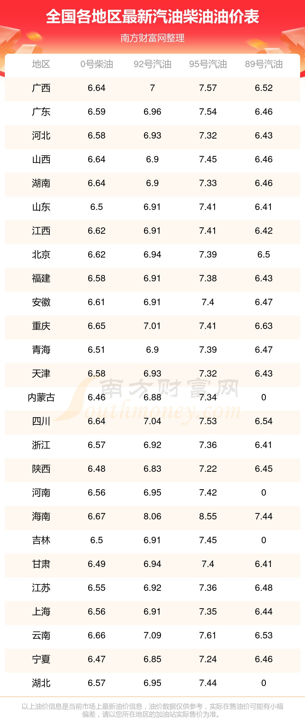 油價數(shù)據(jù)僅供參考,請以您所在地區(qū)的加油站報價為準(zhǔn)。南方財富網(wǎng)發(fā)布此信息的目的在于傳播更多信息,對使用該油價信息所導(dǎo)致的結(jié)果概不承擔(dān)任何責(zé)任。
