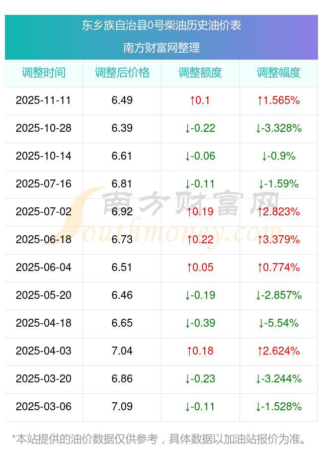 東鄉(xiāng)族自治縣0號柴油歷史油價一覽表