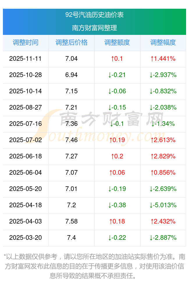 油價數(shù)據(jù)僅供參考,請以您所在地區(qū)的加油站報價為準(zhǔn)。南方財富網(wǎng)發(fā)布此信息的目的在于傳播更多信息,對使用該油價信息所導(dǎo)致的結(jié)果概不承擔(dān)任何責(zé)任。