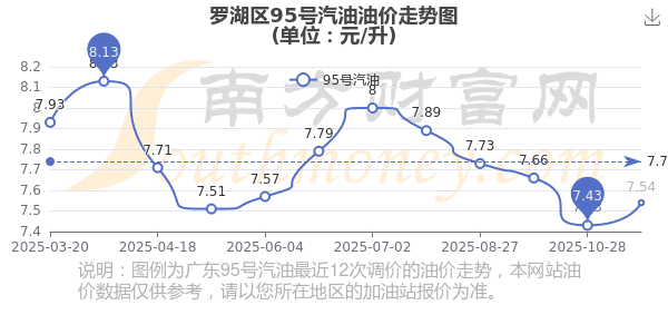 羅湖區(qū)95號(hào)汽油歷史油價(jià)走勢(shì)圖