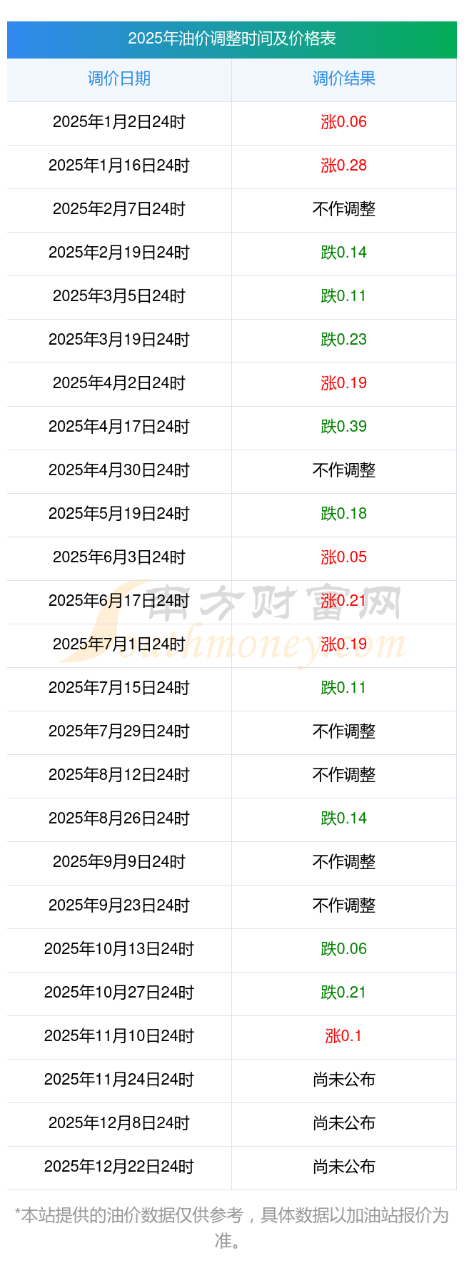 梁園區(qū)11月15日油價調(diào)整時間及價格表