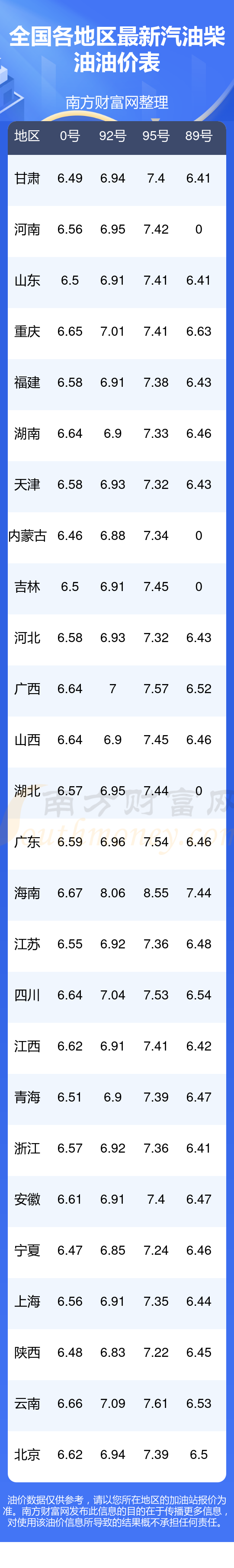 以上油價(jià)信息是當(dāng)前市場(chǎng)上最新油價(jià)信息,油價(jià)數(shù)據(jù)僅供參考,實(shí)際在售油價(jià)可能有小幅偏差,請(qǐng)以您所在地區(qū)的加油站實(shí)際售價(jià)為準(zhǔn)。