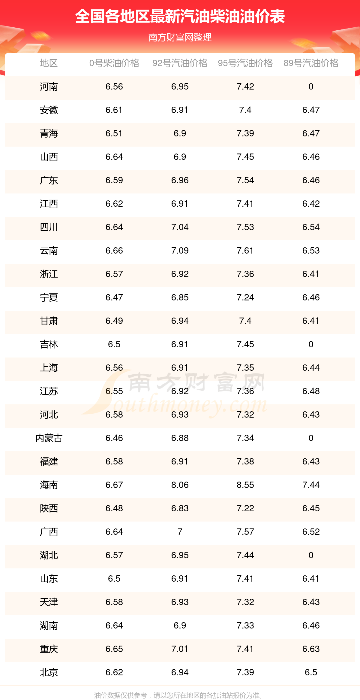 本站提供的油價數(shù)據(jù)僅供參考,具體數(shù)據(jù)以加油站報價為準(zhǔn)。