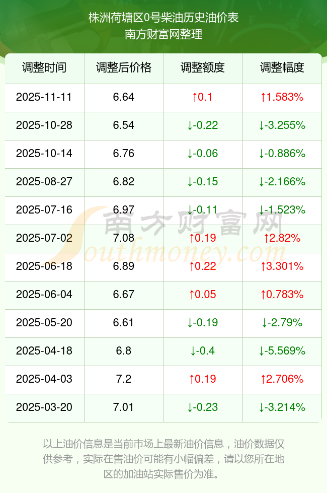 11月15日株洲荷塘區(qū)0號(hào)柴油歷史油價(jià)一覽表