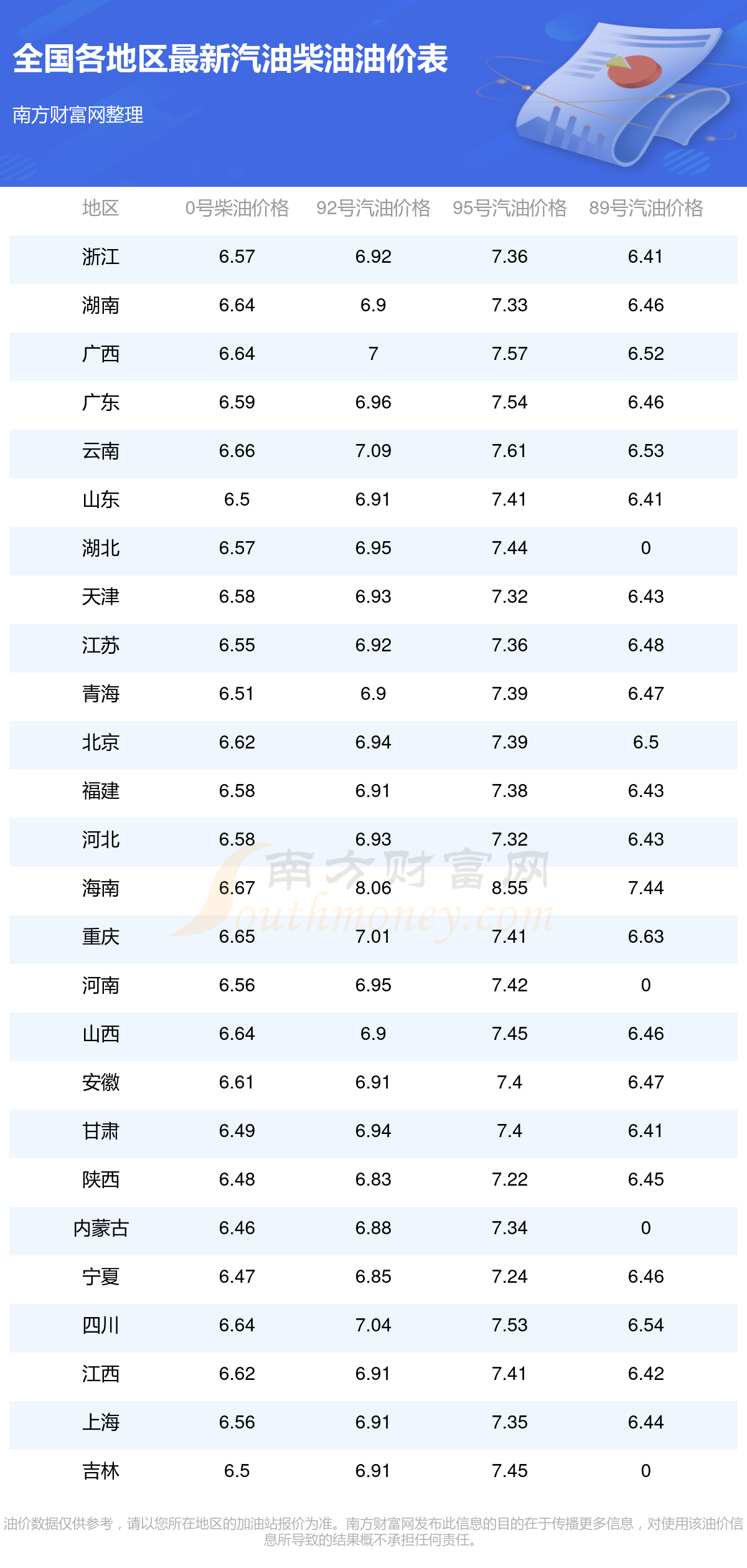 2025年11月15日全國(guó)各地油價(jià)調(diào)整及最新汽油價(jià)格表
