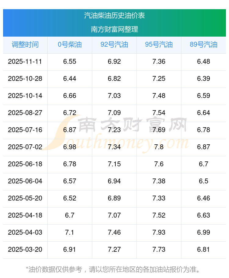 2025年92號汽油價格一覽表