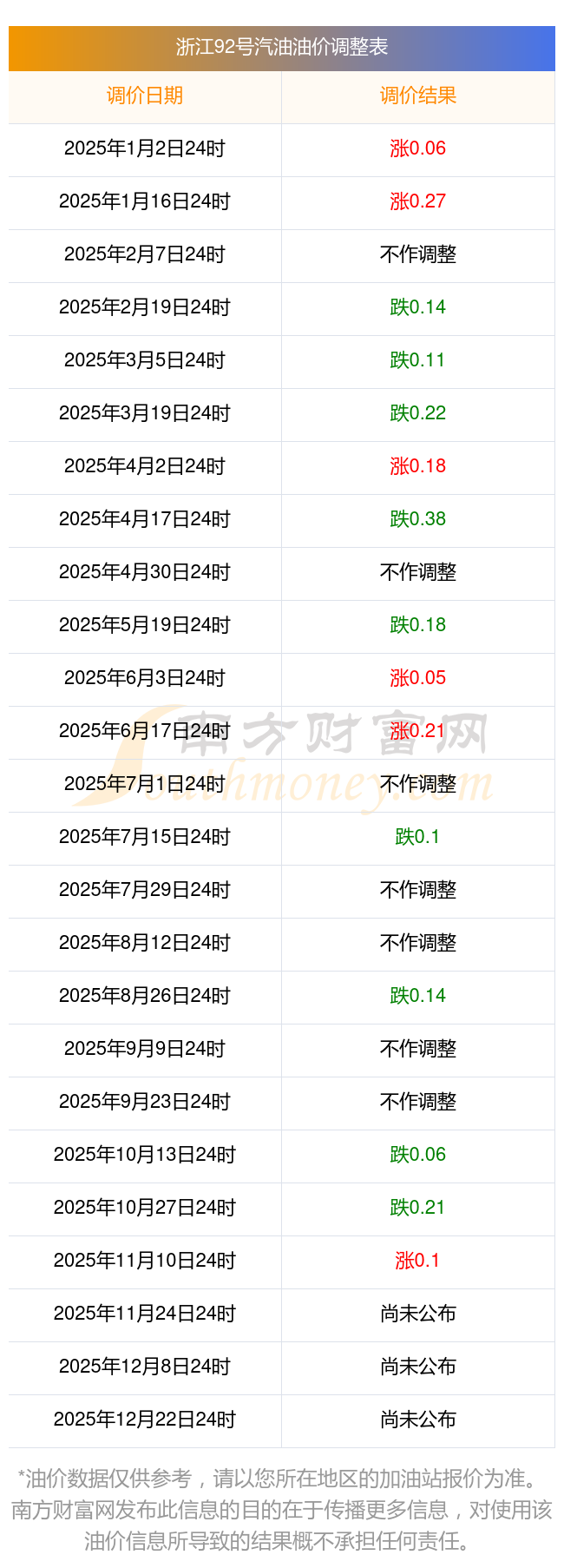 杭州2025年油價(jià)調(diào)整時(shí)間及最新價(jià)格表