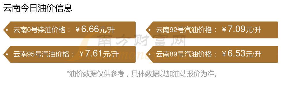 云南汽油、柴油11月15日每升最新價(jià)格為11月11日調(diào)整后的價(jià)格,具體為:92號(hào)汽油7.09元,增了0.1元;95號(hào)汽油7.61元,增了0.11元;89號(hào)汽油6.53元,增了0.1;0號(hào)柴油6.66元,增了0.1元。