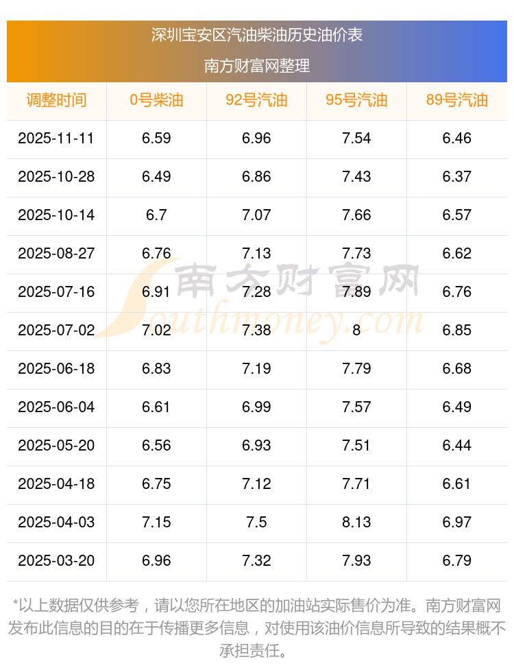 2025年深圳寶安區(qū)油價調(diào)整時間表