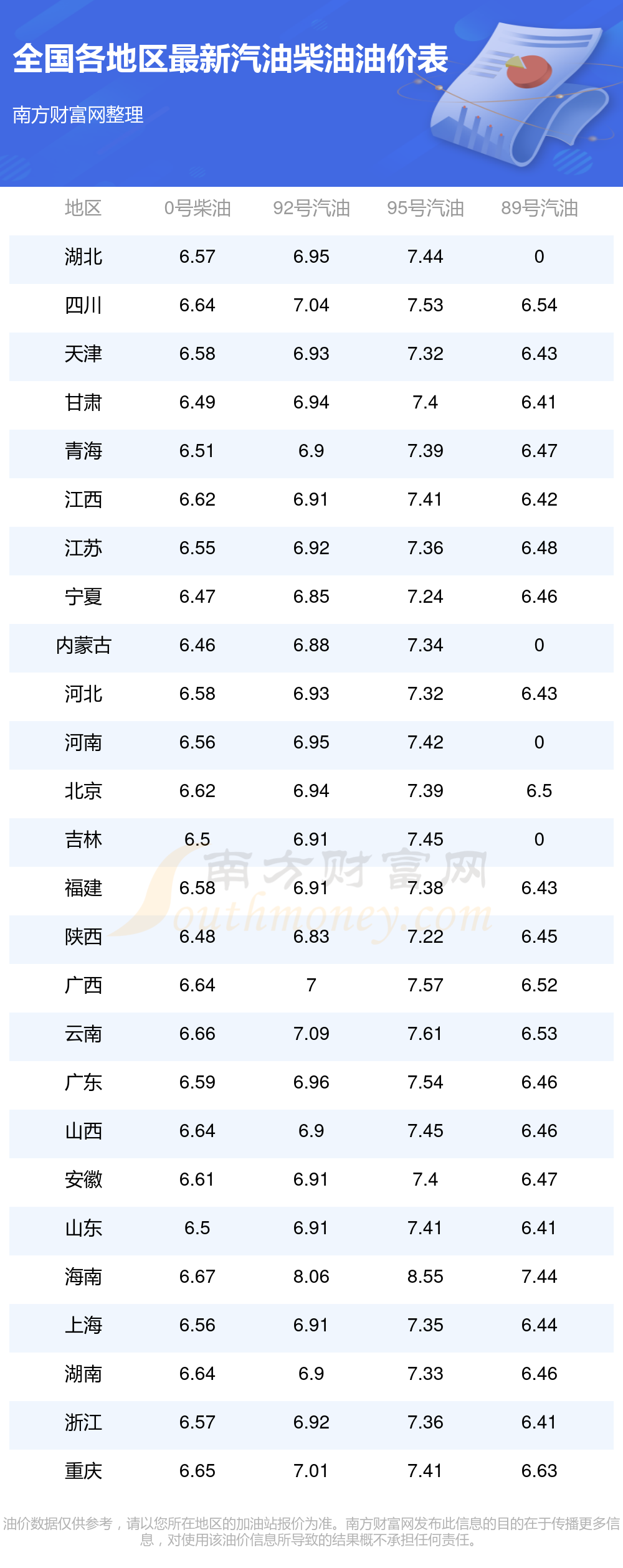 油價數據僅供參考,請以您所在地區(qū)的加油站報價為準。南方財富網發(fā)布此信息的目的在于傳播更多信息,對使用該油價信息所導致的結果概不承擔任何責任。