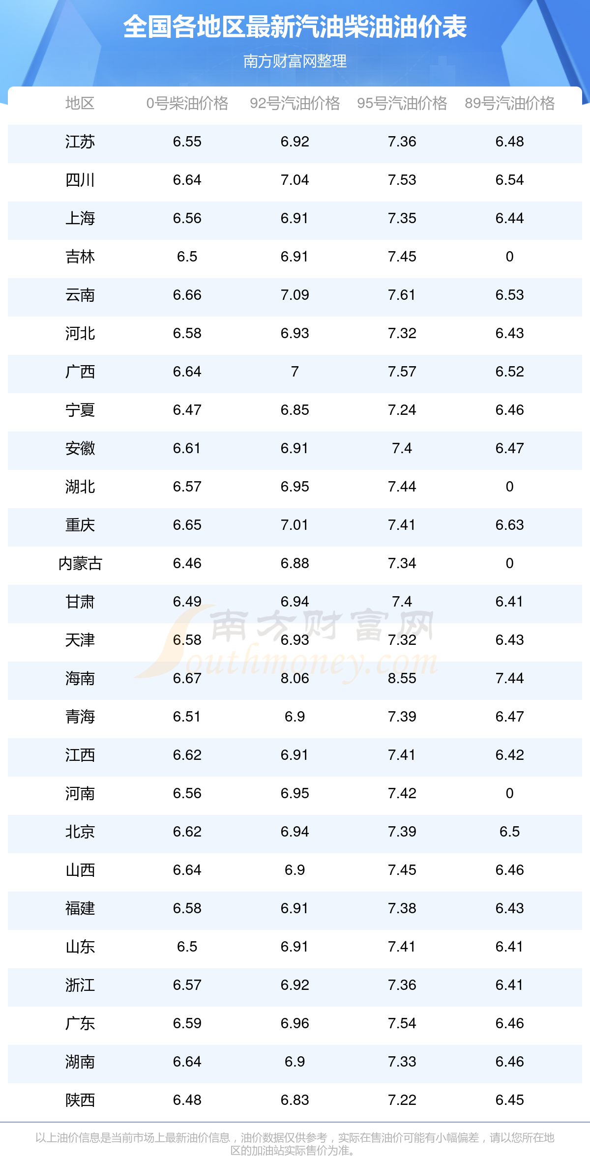2025年11月16日全國油價調(diào)整及最新汽油價格表