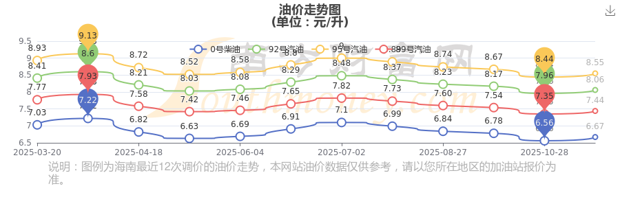 11月16日三亞油價(jià)調(diào)整走勢圖