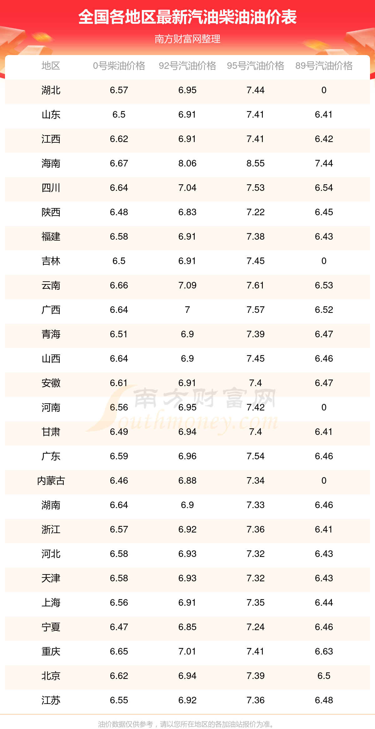 全國92號汽油最新平均價格為:7元每升,其中,最低為陜西,價格為6.83元/升,最高為海南,價格為8.06元/升。