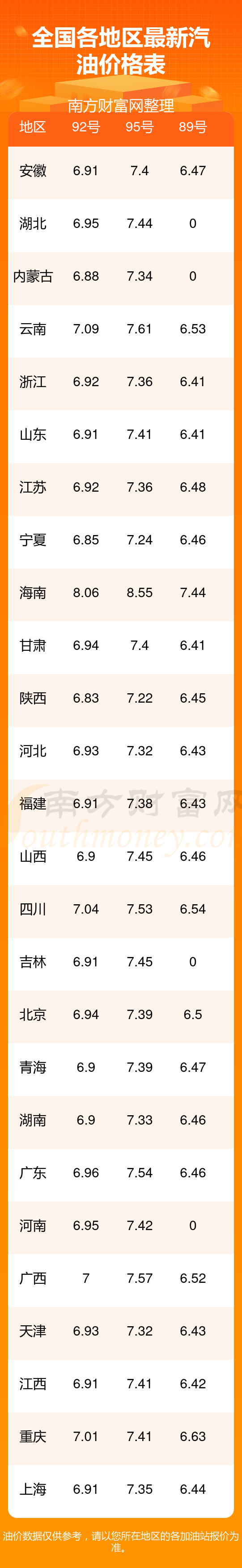 2025年11月16日全國油價調(diào)整及最新汽油價格表