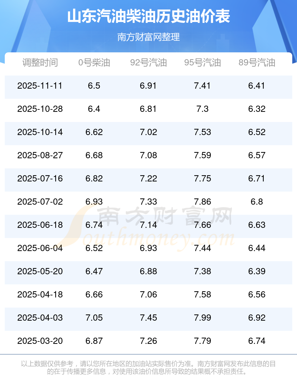 油價(jià)數(shù)據(jù)僅供參考,請以您所在地區(qū)的加油站報(bào)價(jià)為準(zhǔn)。南方財(cái)富網(wǎng)發(fā)布此信息的目的在于傳播更多信息,對使用該油價(jià)信息所導(dǎo)致的結(jié)果概不承擔(dān)任何責(zé)任。