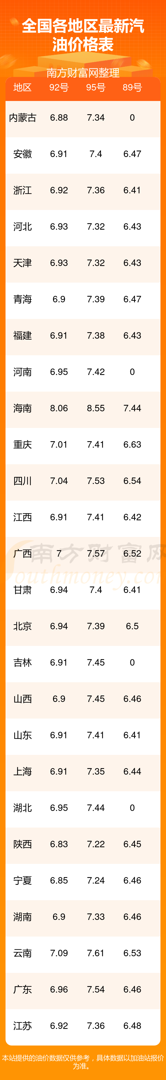 油價數(shù)據(jù)僅供參考,請以您所在地區(qū)的各加油站報價為準(zhǔn)。