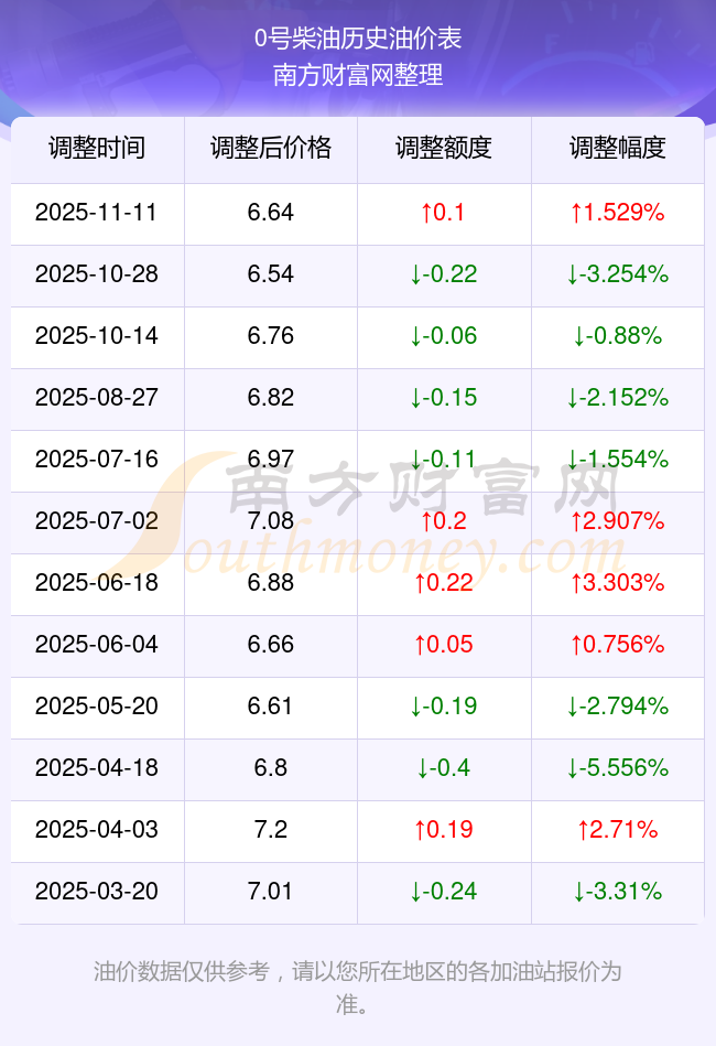 以上數(shù)據(jù)僅供參考,請以您所在地區(qū)的加油站實際售價為準(zhǔn)。南方財富網(wǎng)發(fā)布此信息的目的在于傳播更多信息,對使用該油價信息所導(dǎo)致的結(jié)果概不承擔(dān)責(zé)任。