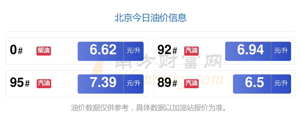 11月16日,北京92號汽油的價格是6.94元每升,本次的調(diào)整時間為11月11日,對比上次的調(diào)整上漲了0.1元,上漲1.462%,下次調(diào)整時間為11月24日24時,還有8.67天。