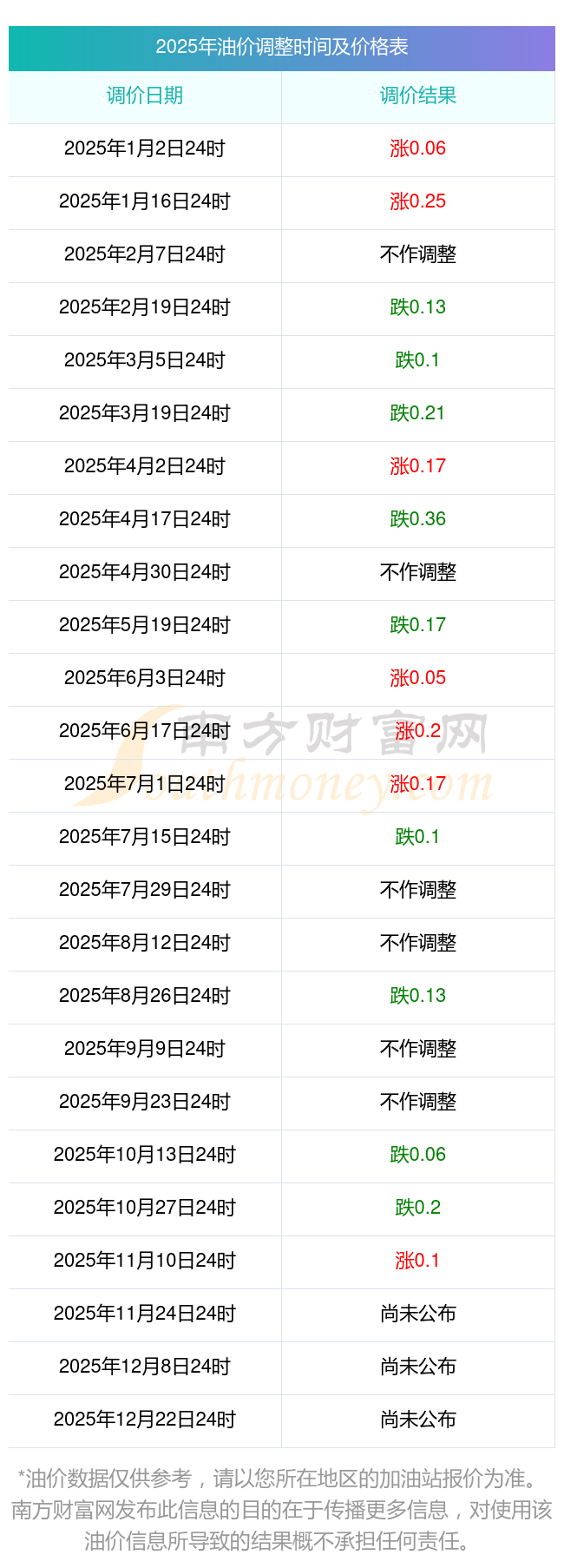 2025年11月16日全國(guó)油價(jià)調(diào)整時(shí)間及價(jià)格一覽表