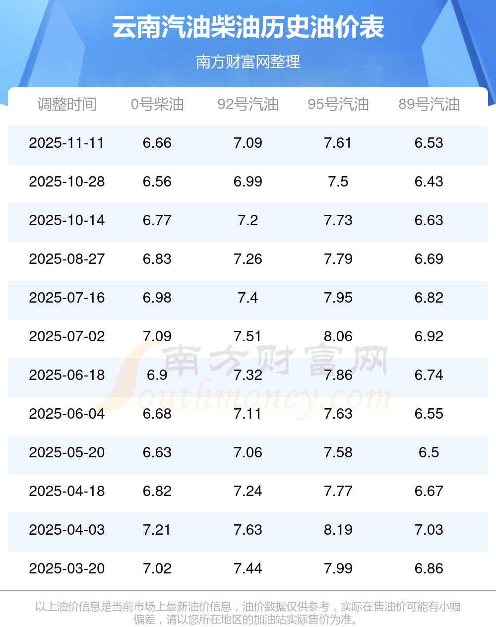 (11月16日)92、95號(hào)汽油價(jià)格一覽表