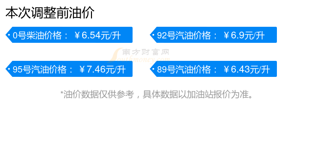 油價最新調整時間為11月11日 ,全國92號汽油最新平均價格為:7元每升,其中,最高為海南,價格為8.06元/升,最低為陜西,價格為6.83元/升。全國95號汽油最新平均價格為:7元每升,其中,最高為海南,價格為8.55元/升,最低為陜西,價格為7.22元/升。全國0號
