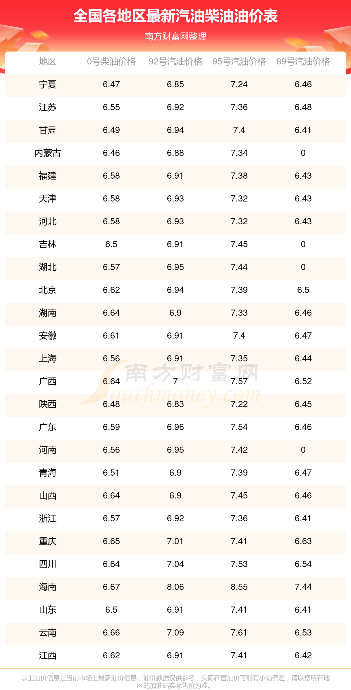 2025年11月16日全國油價調(diào)整及最新汽油價格表