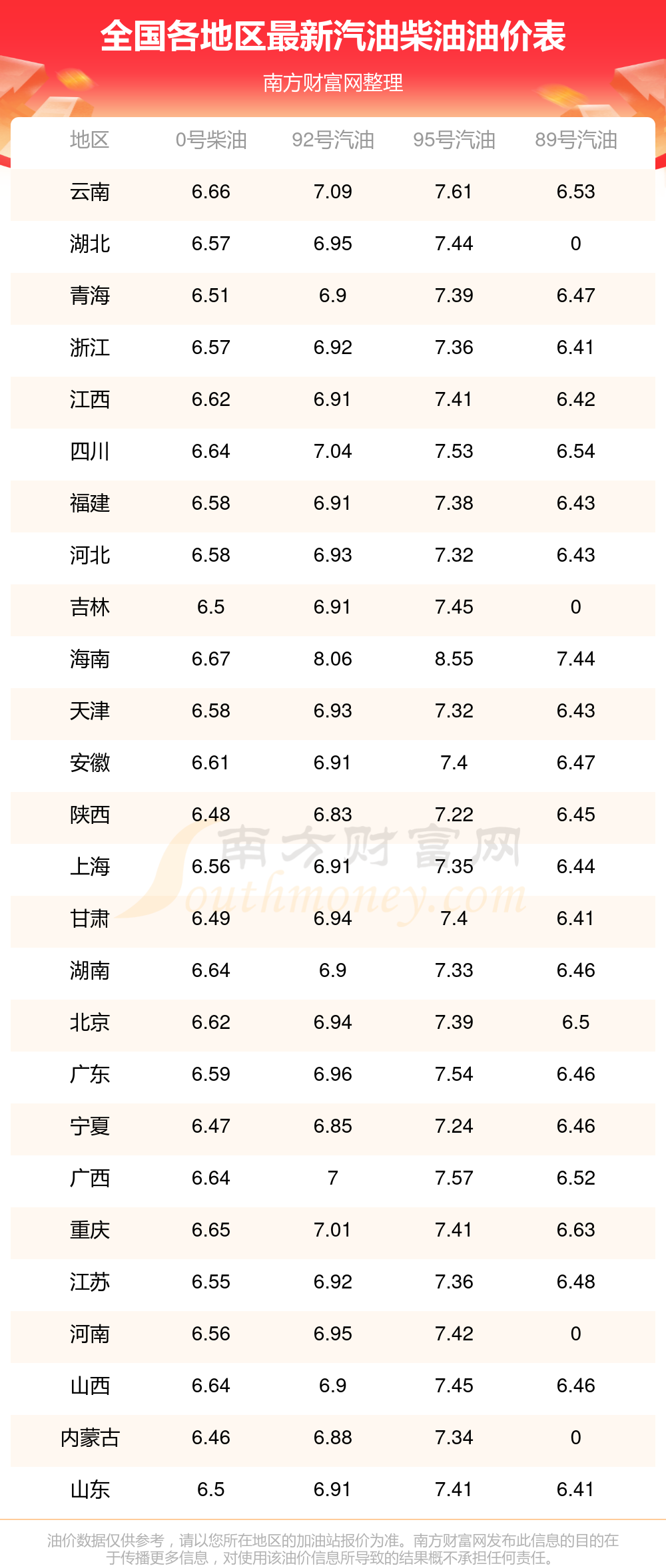油價(jià)調(diào)整最新消息:長(zhǎng)沙望城區(qū)汽油、柴油11月16日每升的價(jià)格具體是(11月11日調(diào)整后的價(jià)格):92號(hào)汽油6.9元;95號(hào)汽油7.33元;89號(hào)汽油6.46元;0號(hào)柴油6.64元。下一輪油價(jià)調(diào)整時(shí)間11月24日24時(shí)。