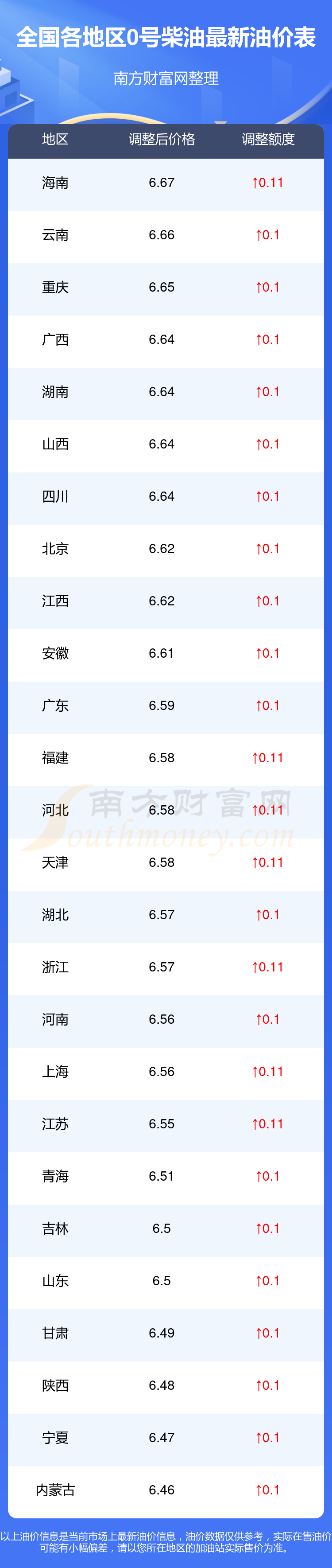 以上油價信息是當前市場上最新油價信息,油價數(shù)據(jù)僅供參考,實際在售油價可能有小幅偏差,請以您所在地區(qū)的加油站實際售價為準。