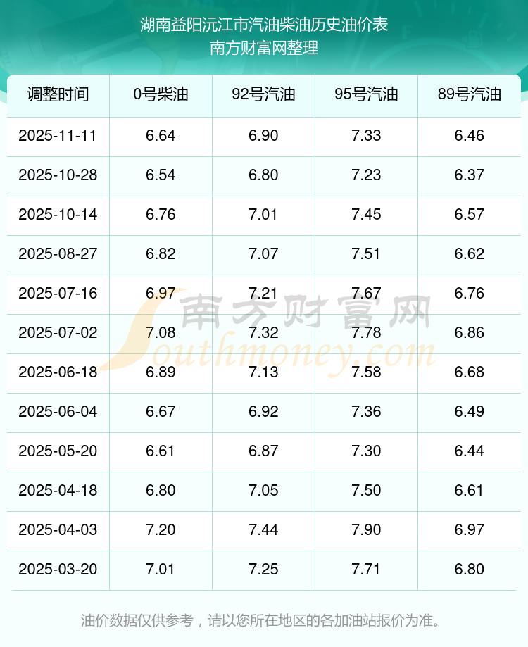 2025年湖南益陽(yáng)沅江市油價(jià)調(diào)整時(shí)間表