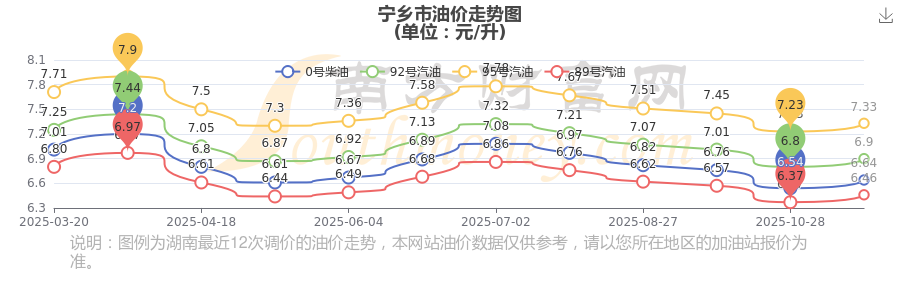 寧鄉(xiāng)市11月16日92號汽油歷史油價調(diào)整走勢圖