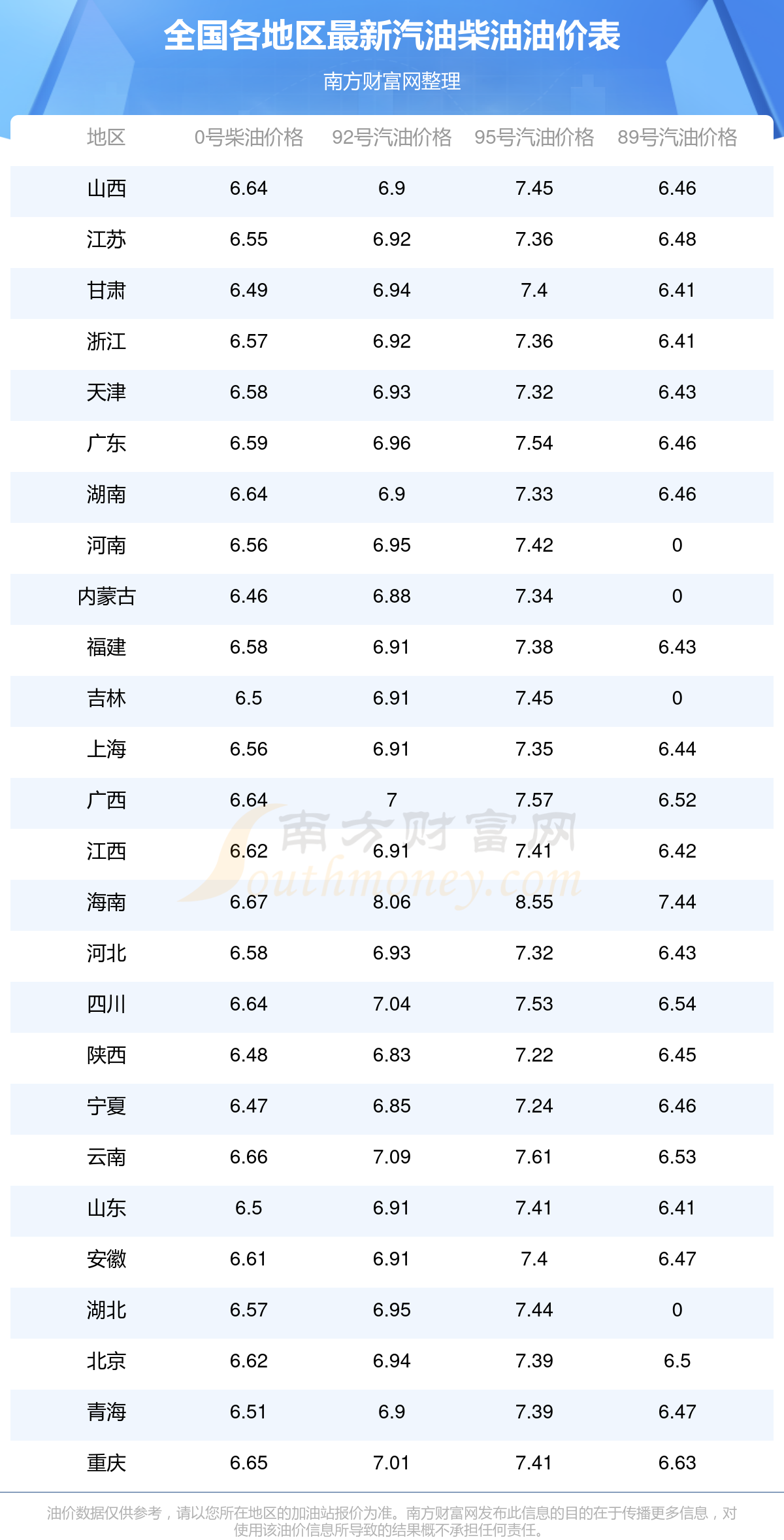 2025年11月16日全國油價調(diào)整及最新汽油價格表