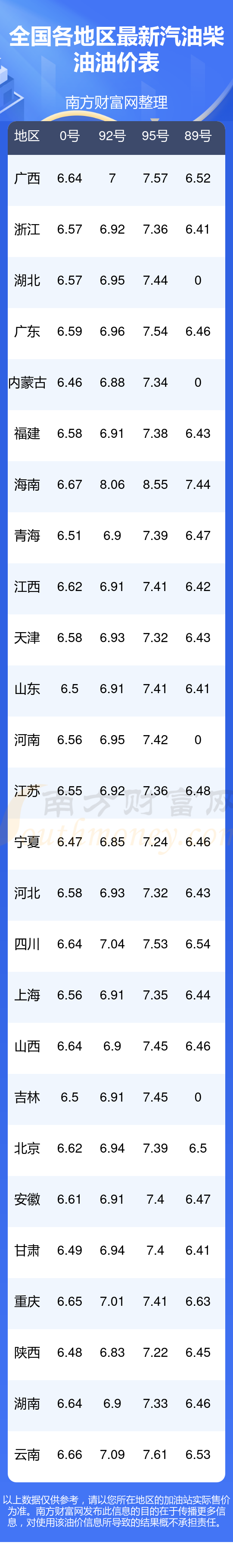 11月16日全國89號汽油最新平均價格為7元每升(本輪油價格調(diào)整時間為11月11日),其中,全國89號汽油最低為浙江,價格6.41元/升,89號汽油最高為海南,價格7.44元/升。下一輪油價調(diào)整時間11月24日24時,距離現(xiàn)在還有8.57天。