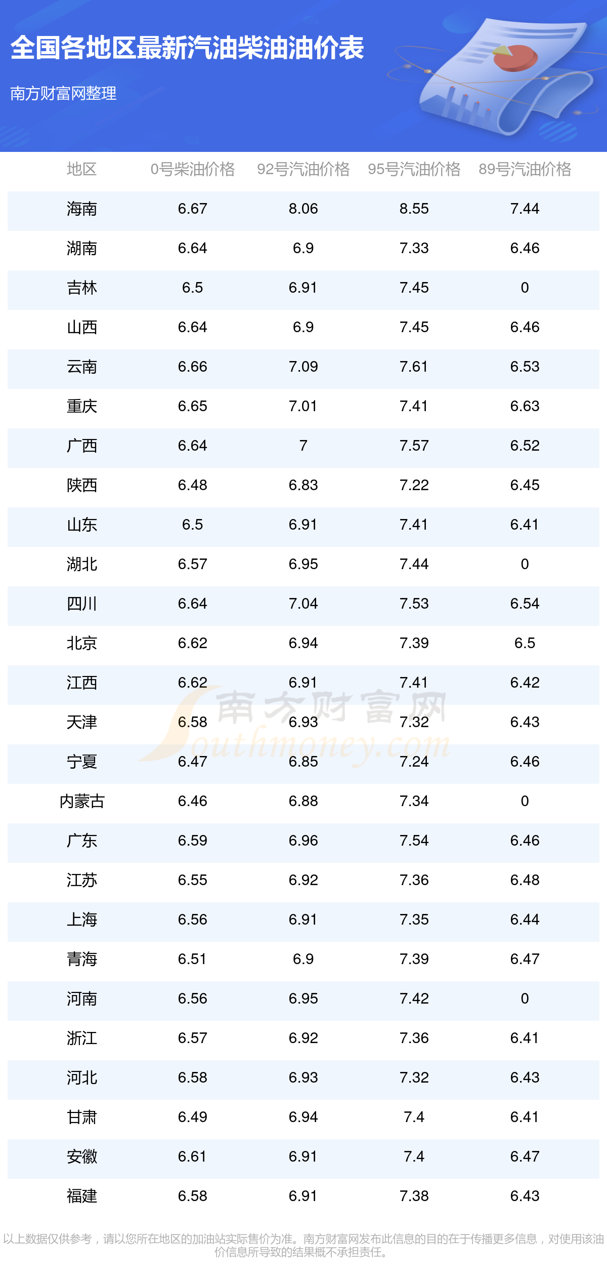2025年11月16日全國油價調(diào)整及最新汽油價格表