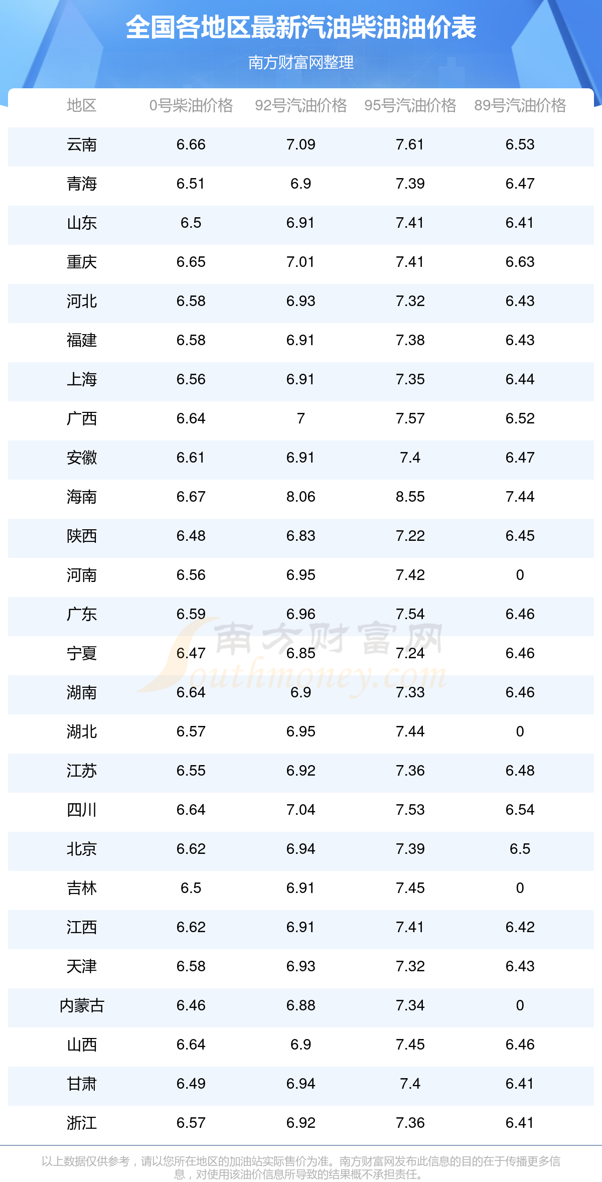 2025年11月16日全國(guó)油價(jià)調(diào)整及最新汽油價(jià)格表