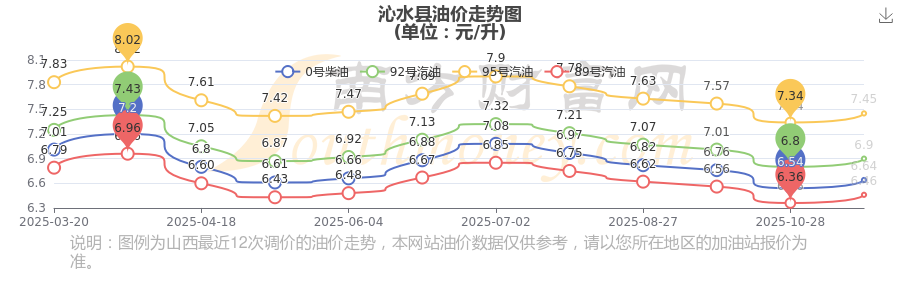 11月16日沁水縣0號柴油歷史油價(jià)走勢圖