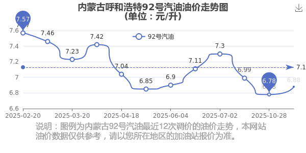 內(nèi)蒙古呼和浩特2025年汽油價格調(diào)整走勢圖