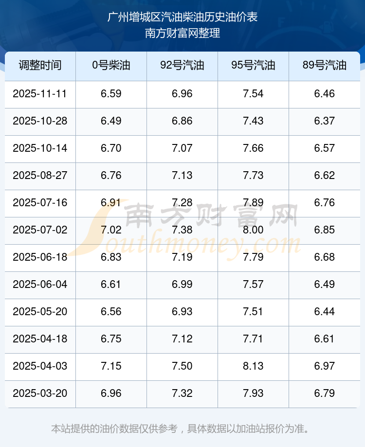 2025年廣州增城區(qū)汽油價(jià)格一覽表