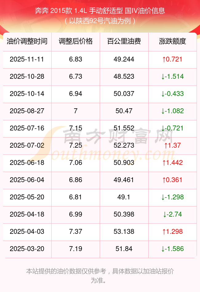 依照11月11日92號(hào)汽油最新調(diào)整價(jià)格6.83元/升來(lái)計(jì)算(以陜西為例),該車型百公里的平均油費(fèi)是49.244元,依照上一輪10月28日調(diào)整價(jià)格6.73元/升來(lái)計(jì)算,百公里的平均油費(fèi)是48.523元,對(duì)比上一輪多花0.721元,下一輪的油價(jià)調(diào)整時(shí)間11月24日24時(shí)。