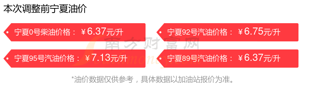 11月16日,寧夏92號(hào)汽油的價(jià)格是6.85元每升,本次的調(diào)整時(shí)間為11月11日,對(duì)比上次的調(diào)整漲了0.1元,漲1.481%,下次調(diào)整時(shí)間為11月24日24時(shí),還有8.51天。