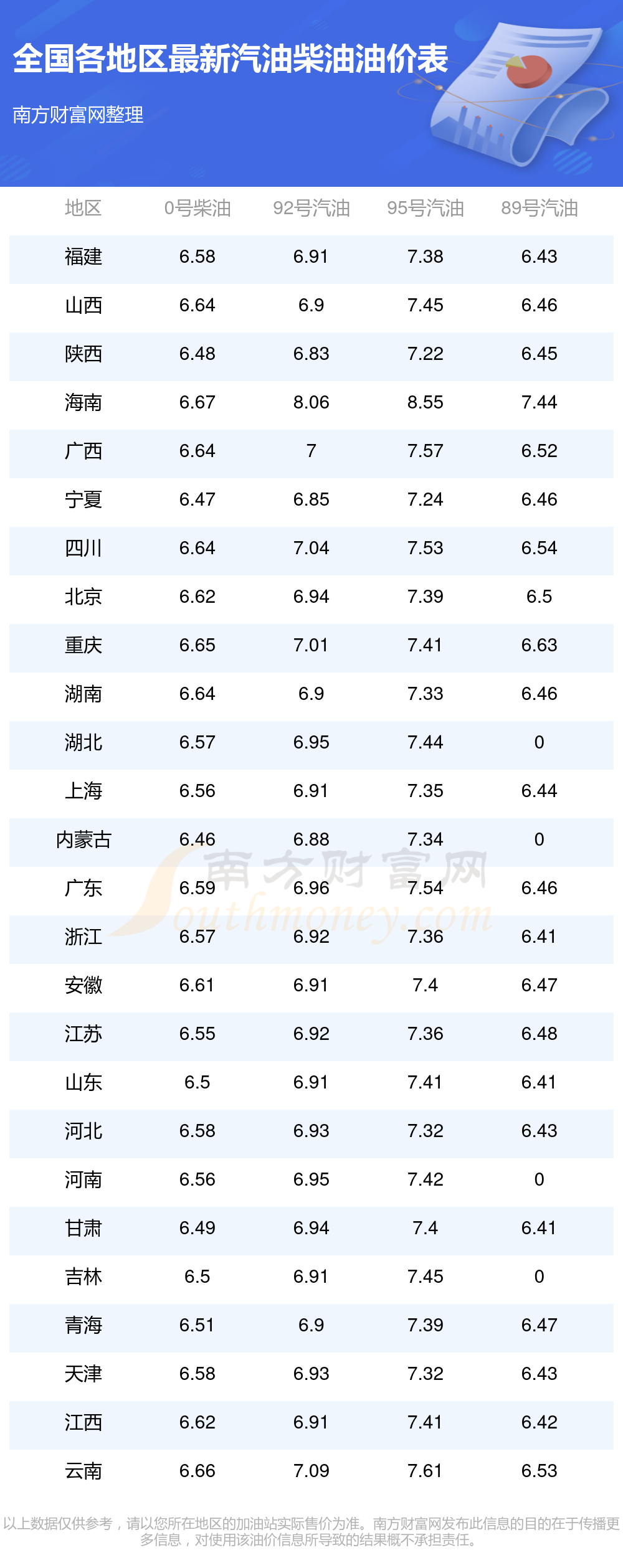 2025年11月16日全國各地油價(jià)調(diào)整及最新汽油價(jià)格表