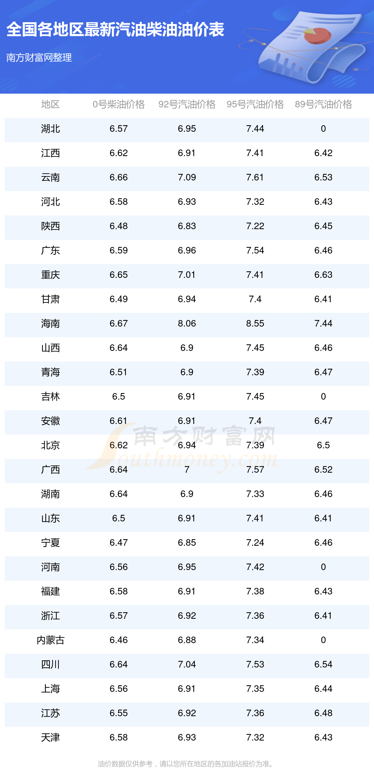 全國各地區(qū)最新油價表
